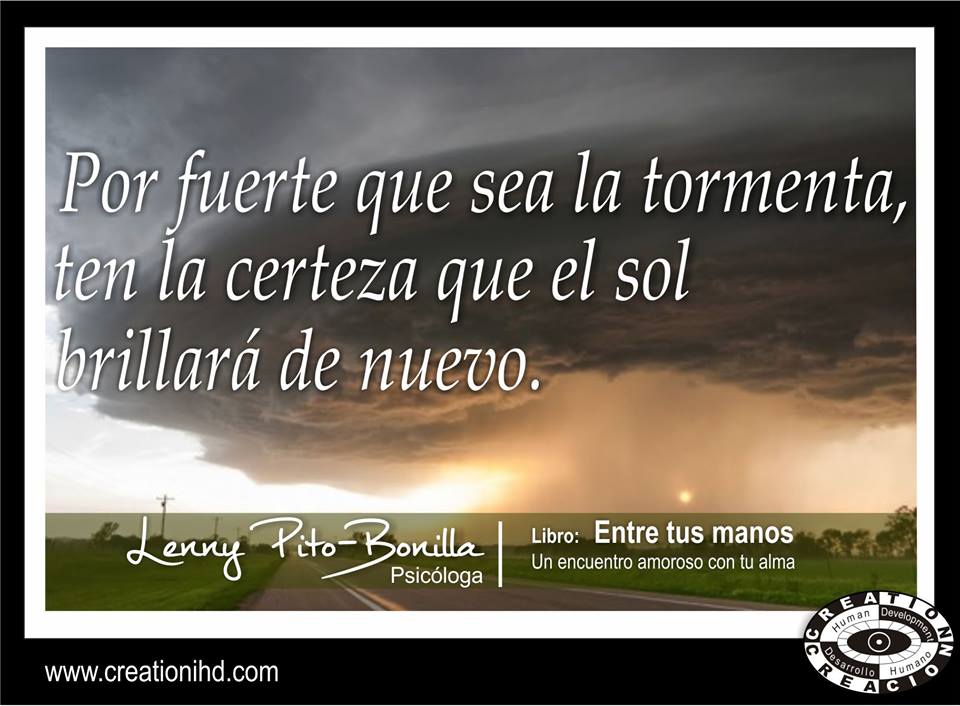 Por fuertes o terribles que sean las tormentas, los vientos, los huracanes, el diluvio, los terremotos o cualquier otro fenómeno natural en tu entorno o en tu interior, siempre sin excepción ten la certeza que llegara la calma, que volverá a salir el sol y que brillara de nuevo el arcoíris. Por dolorosa y profunda que sea la destrucción, los pueblos nunca dejan de levantarse con coraje y valor, tú eres parte de ellos y estás hecho de la misma madera. Puedes creer en esto si comprendes y vives aquella poderosa acción de Jesús de Nazareth en el mar, cuando en medio de la tormenta y de grandes olas ordeno a las aguas calmarse y reclamo a la gente que le acompañaba por flaquear en su fe y dejarse descontrolar por el miedo. Marcos 4:40-41.